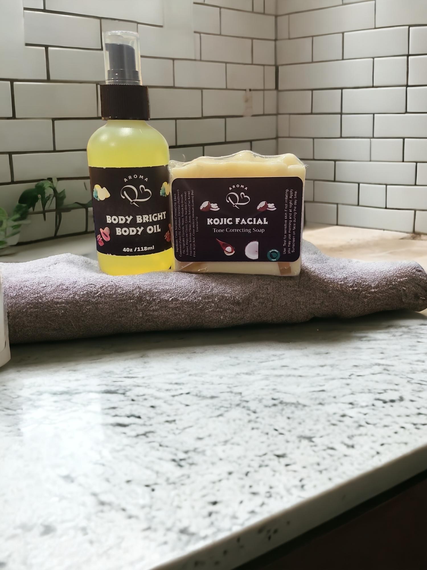 Our Body Bright Collection is more than just skincare; it's a self-care ritual that brings out your natural radiance. Kojic Soap and Body Bright Body Oil transform your skincare routine.