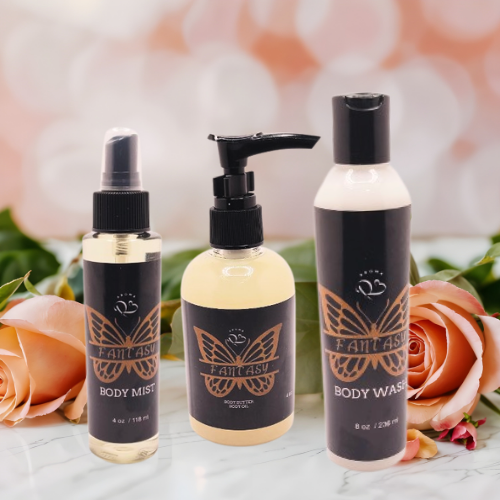 The Fantasy Body Set brings a touch of magic to your daily routine. Featuring a body wash, body mist, and luxurious liquid body butter, this set is designed to leave your skin soft, refreshed, and beautifully scented. Indulge in the perfect trio that turns everyday care into an enchanting escape.